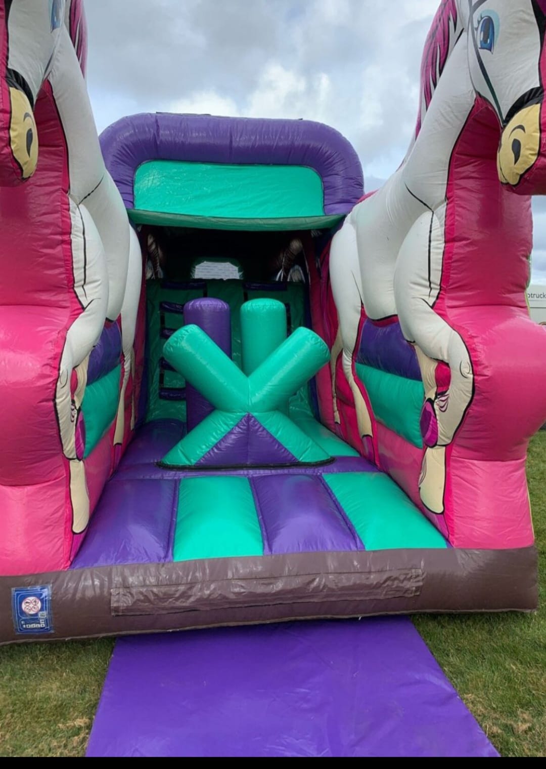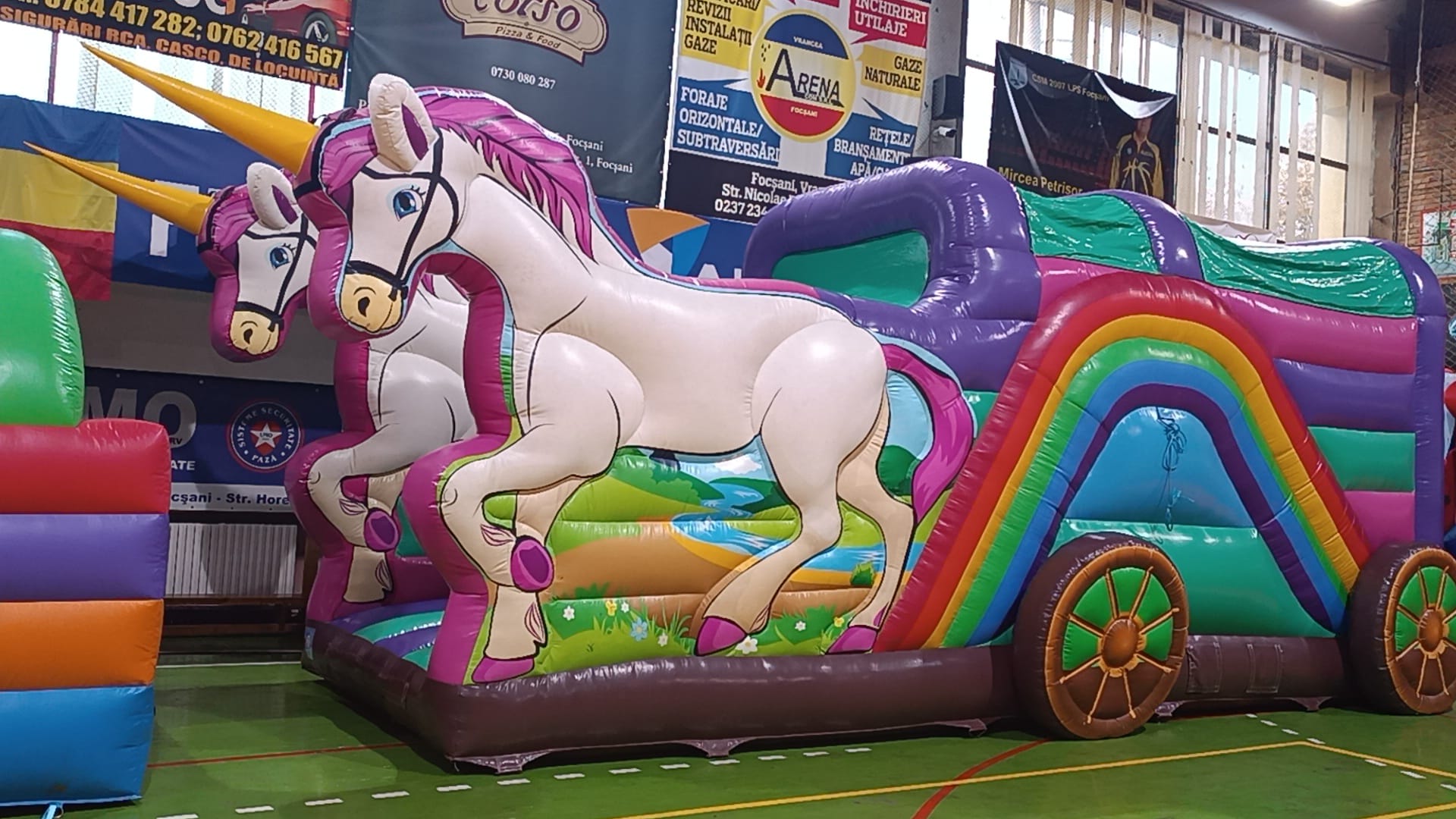Este un joc plin de culoare, in care copii se simt plini de energie si in deplina siguranta datorita plaselor laterale, jocul constituie atractia oricarei petreceri tematice sau eveniment organizat pentru copii.
