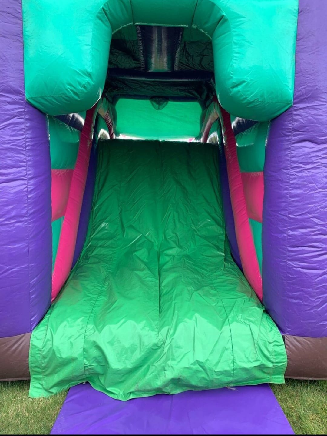 Bouncer cu tobogan gonflabil incorporat ofera ca variante de distractie: saltea gonflabila pentru topait, tobogan.